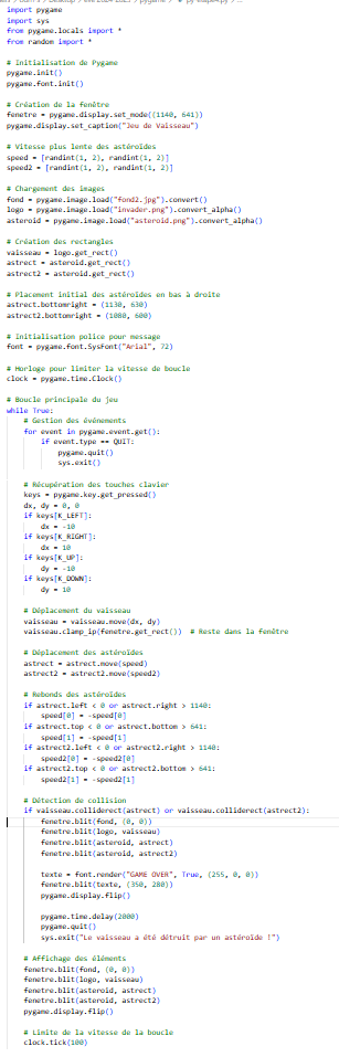 Gère la fin du jeu en cas de collision du vaisseau avec les astéroïdes.